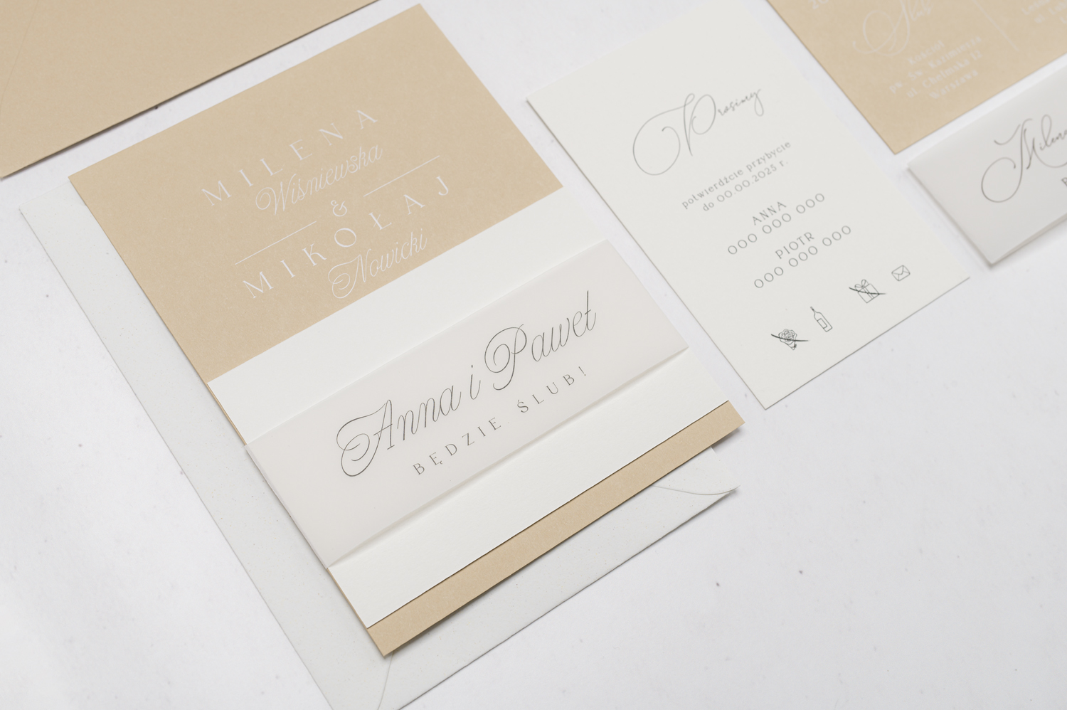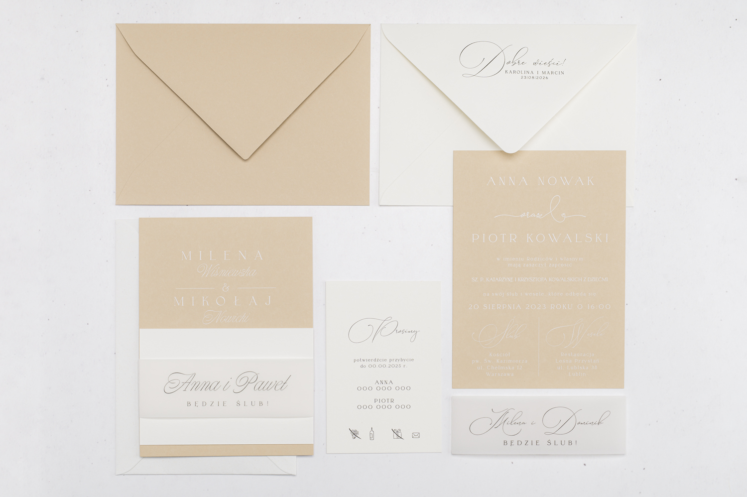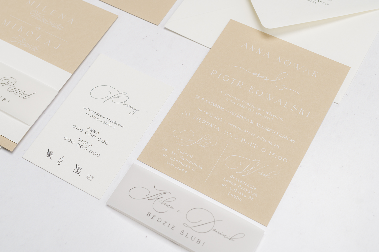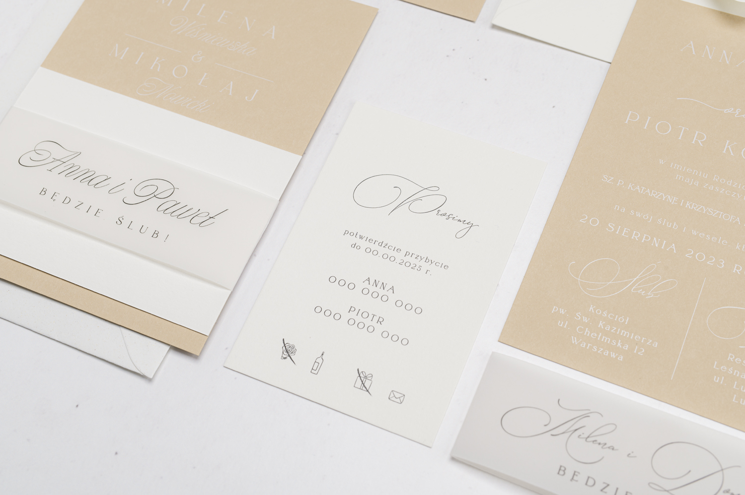 Wszystkie elementy drukowane na zaproszeniach możecie spersonalizować według uznania.