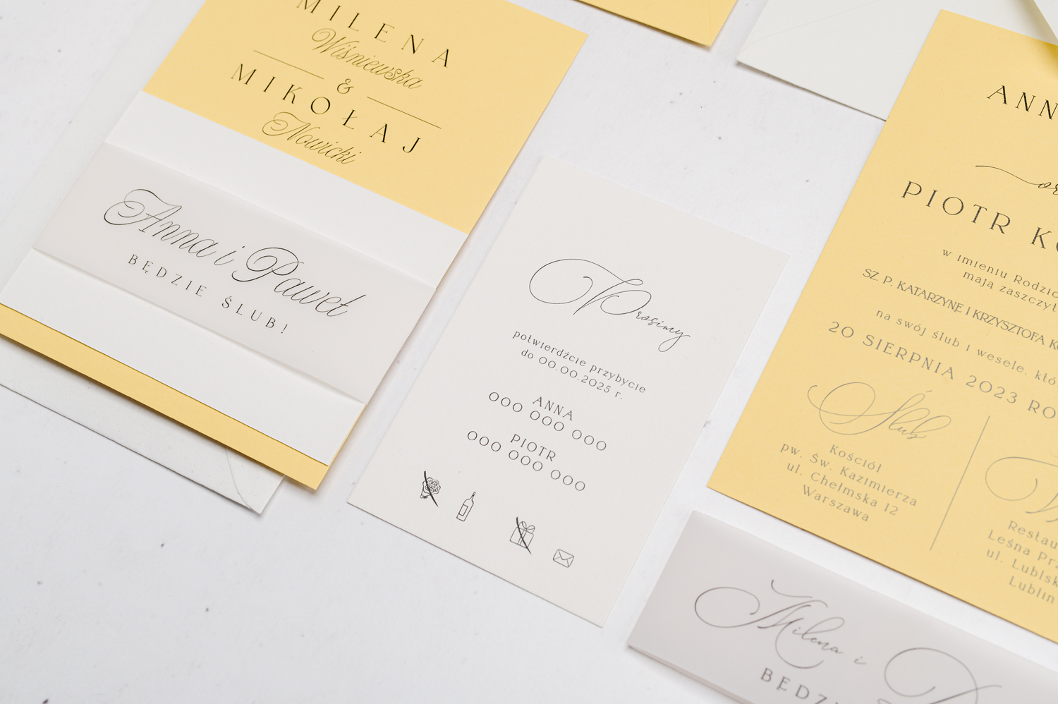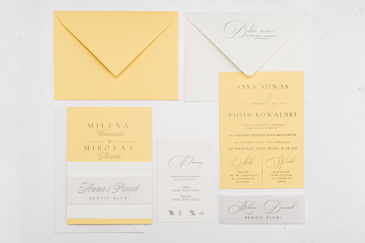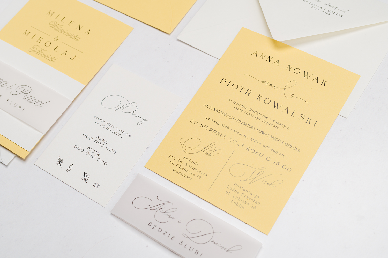Wszystkie elementy drukowane na zaproszeniach możecie spersonalizować według uznania.