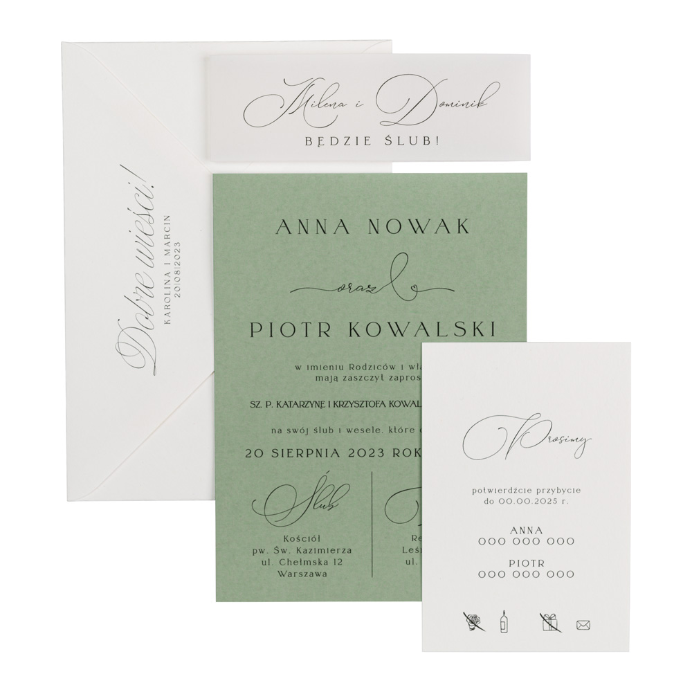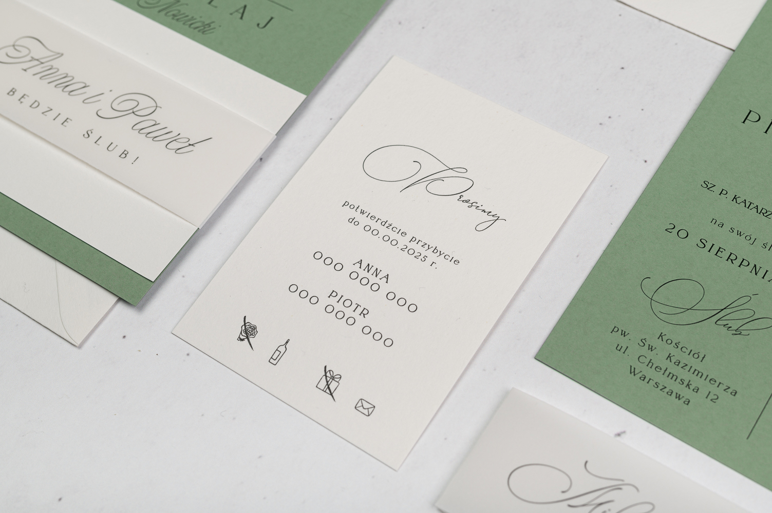Dodaj pierwszą opinię dla Minimalistyczne zaproszenia ślubne karta Matcha