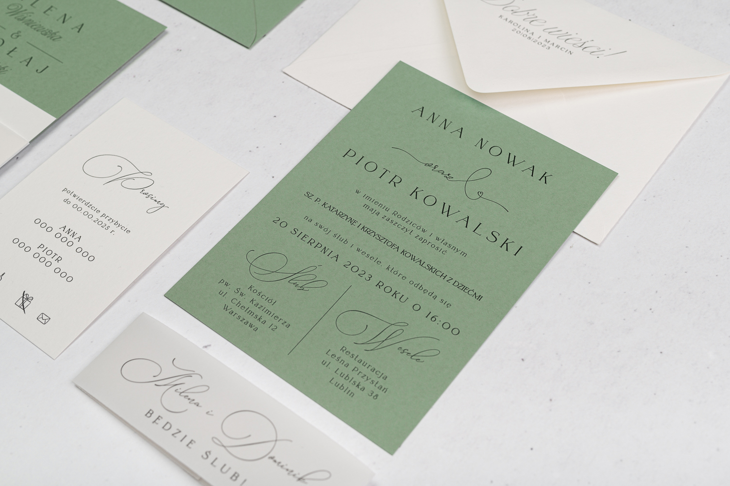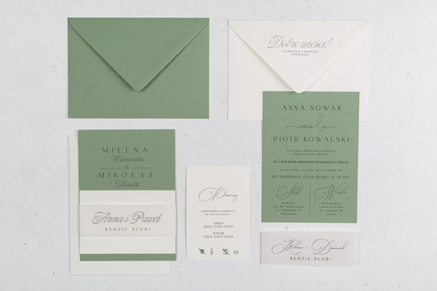 Wszystkie elementy drukowane na zaproszeniach możecie spersonalizować według uznania.