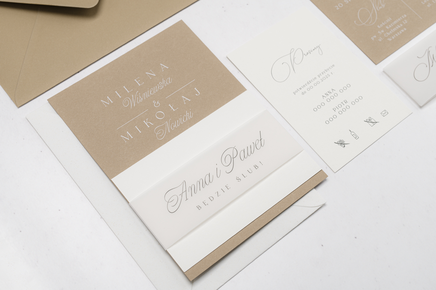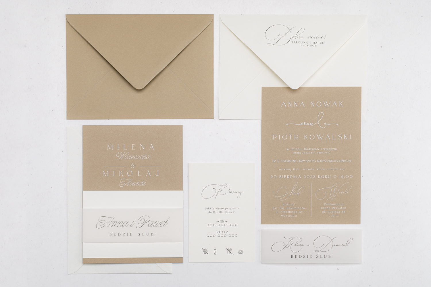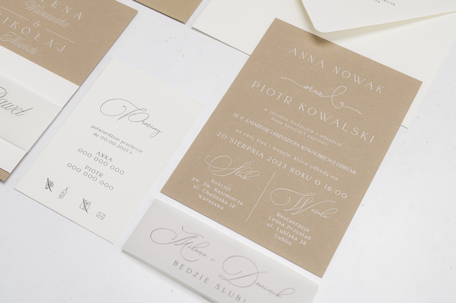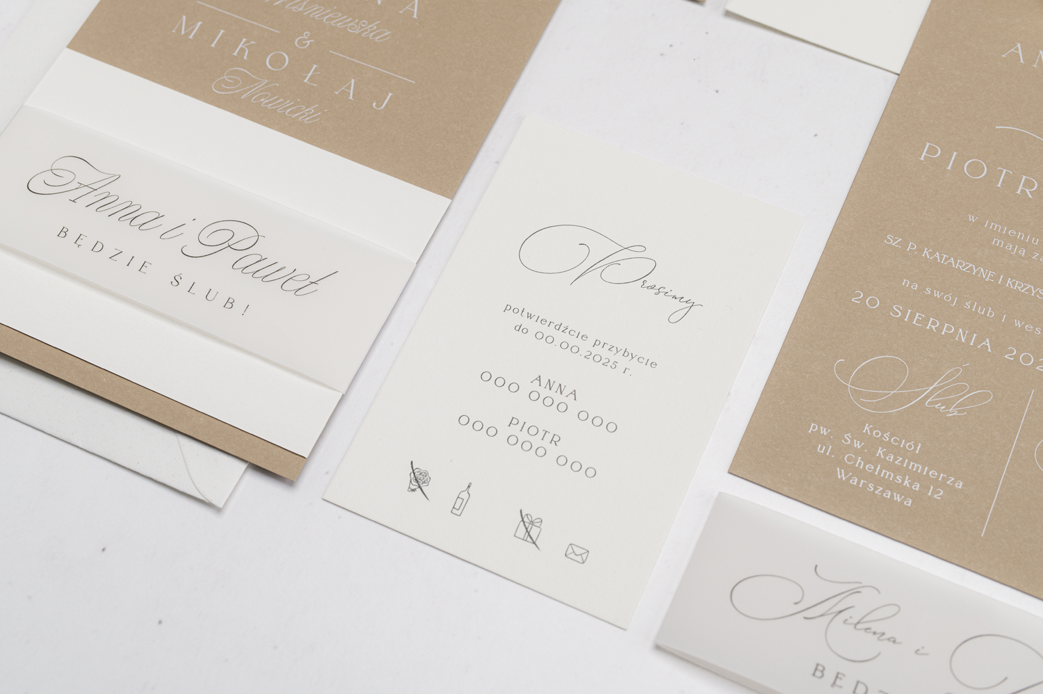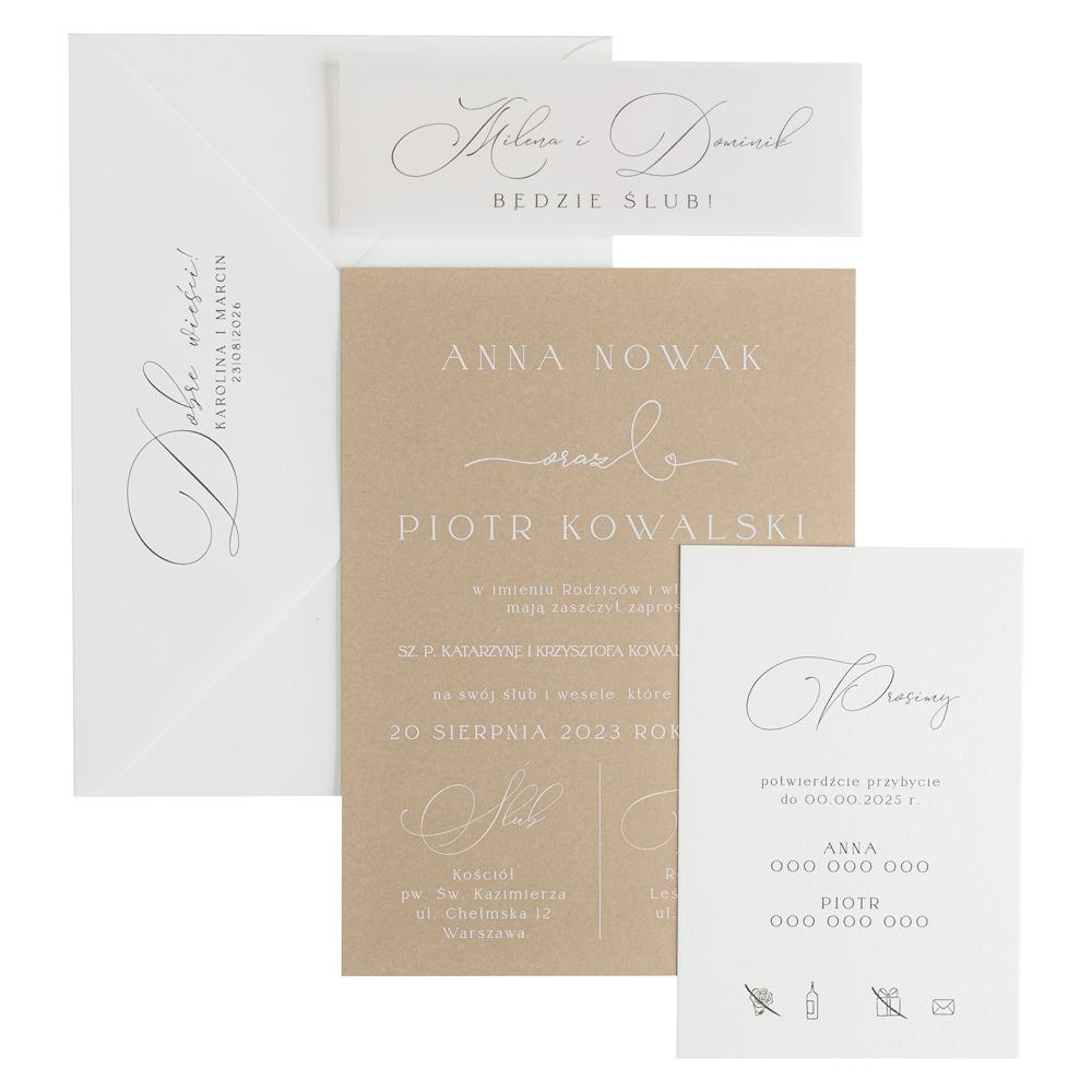 Wszystkie elementy drukowane na zaproszeniach możecie spersonalizować według uznania.