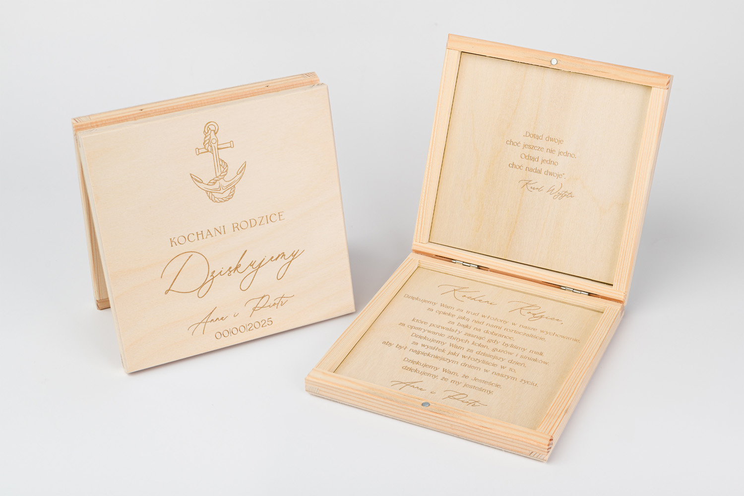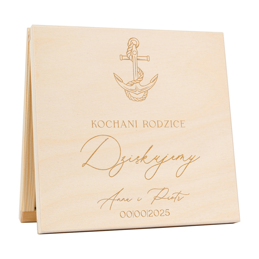 Dodaj pierwszą opinię dla Podziękowanie w drewnianym pudełku z grawerunkiem kotwica