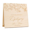 Drewniane pudełeczko to bardzo trwała forma spersonalizowanego upominku. Może służyć jako zaproszenie, prośba o błogosławieństwo lub podziękowanie. Tekst może być skierowany do różnych osób np.: rodziców, świadków, chrzestnych, dziadków lub innych ważnych dla Was osób, które chcecie obdarować taką pamiątką z tego wyjątkowego dnia.