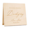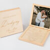 Drewniane pudełeczko to bardzo trwała forma spersonalizowanego upominku. Może służyć jako zaproszenie, prośba o błogosławieństwo lub podziękowanie. Tekst może być skierowany do różnych osób np.: rodziców, świadków, chrzestnych, dziadków lub innych ważnych dla Was osób, które chcecie obdarować taką pamiątką z tego wyjątkowego dnia.