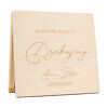 Drewniana konstrukcja z pięknym nadrukiem będzie doskonale pasować do kwiatów, koszów i innych podziękowań wręczanych na przyjęciu weselnym.