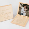Drewniane pudełeczko to bardzo trwała forma spersonalizowanego upominku. Może służyć jako zaproszenie, prośba o błogosławieństwo lub podziękowanie. Tekst może być skierowany do różnych osób np.: rodziców, świadków, chrzestnych, dziadków lub innych ważnych dla Was osób, które chcecie obdarować taką pamiątką z tego wyjątkowego dnia.