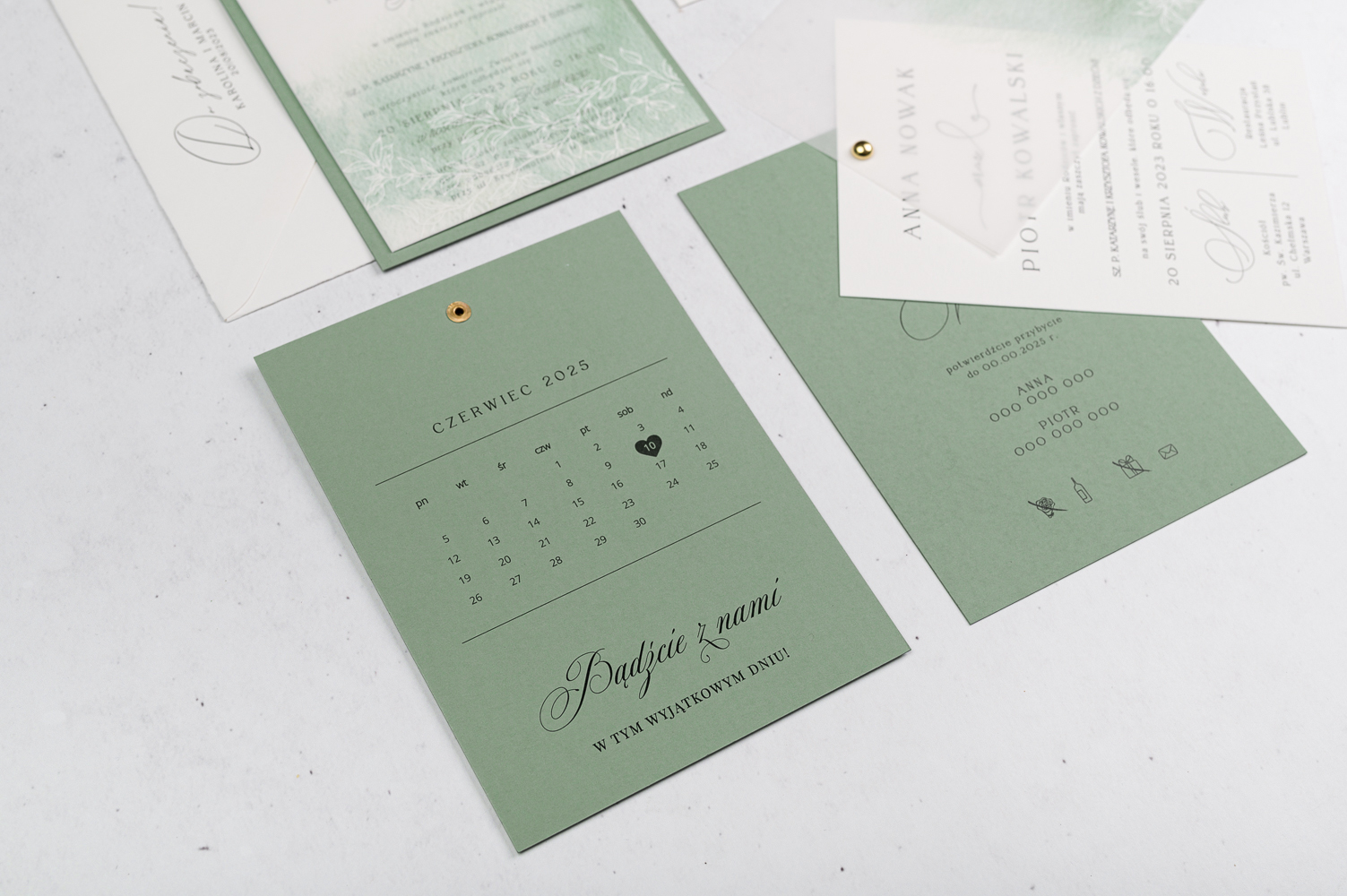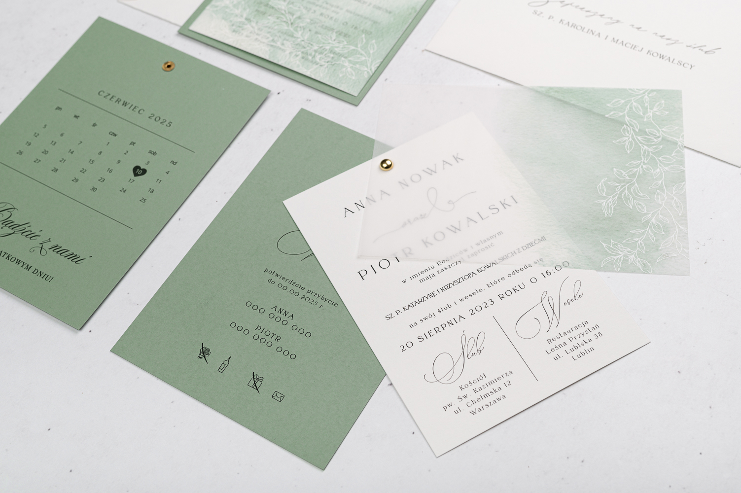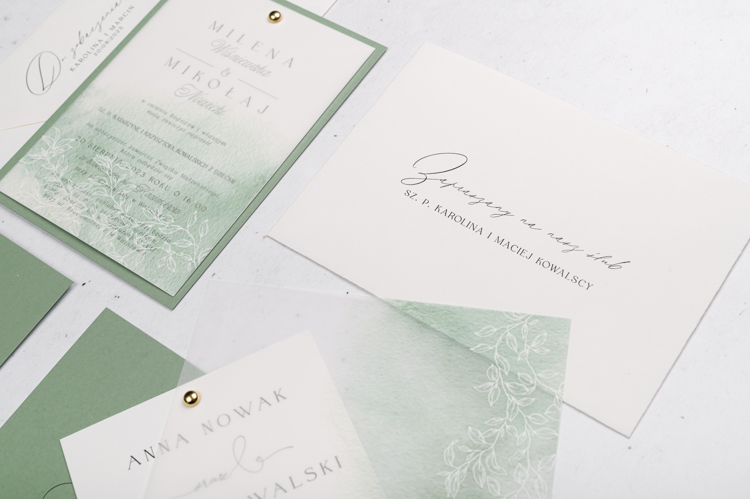 Próbne – Zaproszenia ślubne akwarelowe listki Matcha
