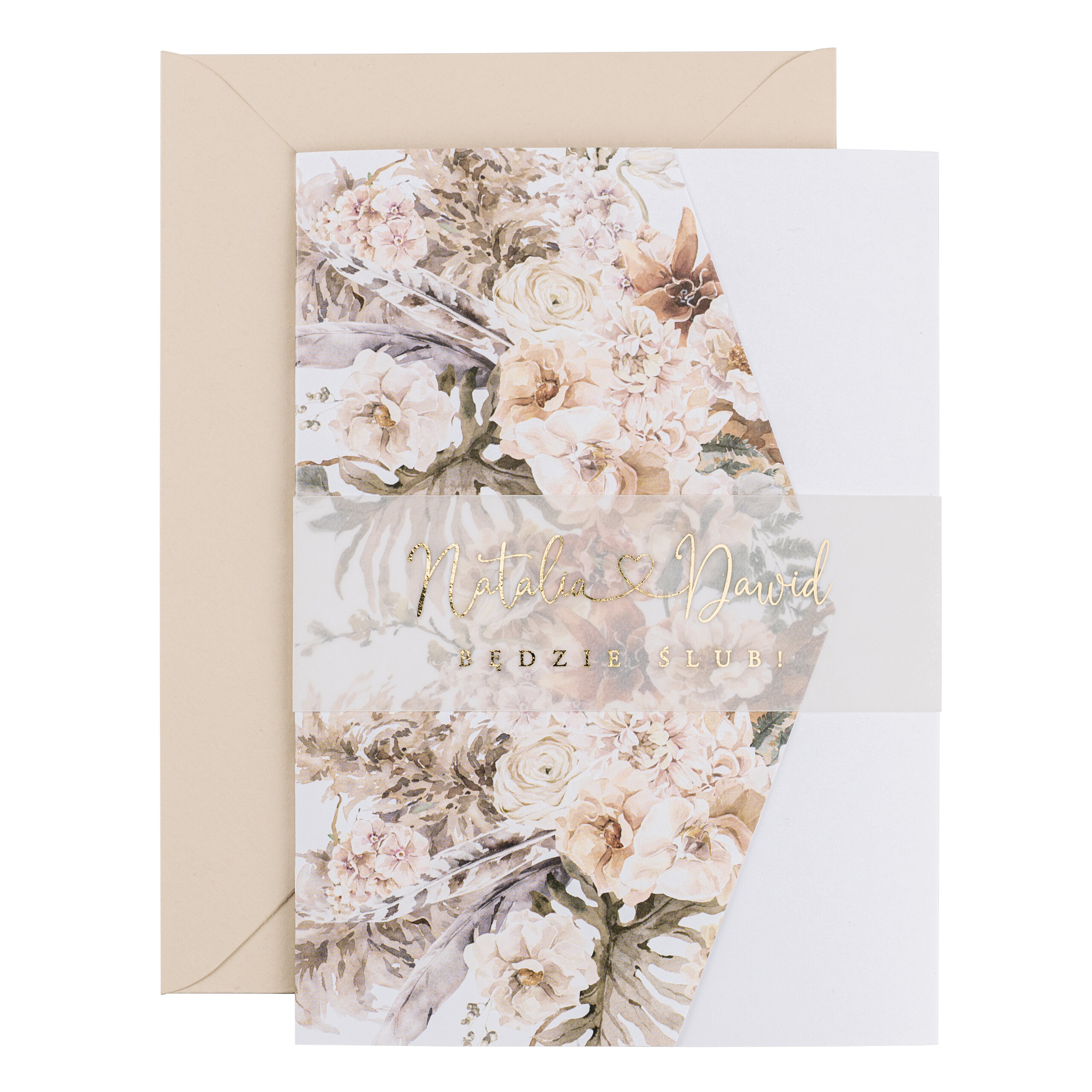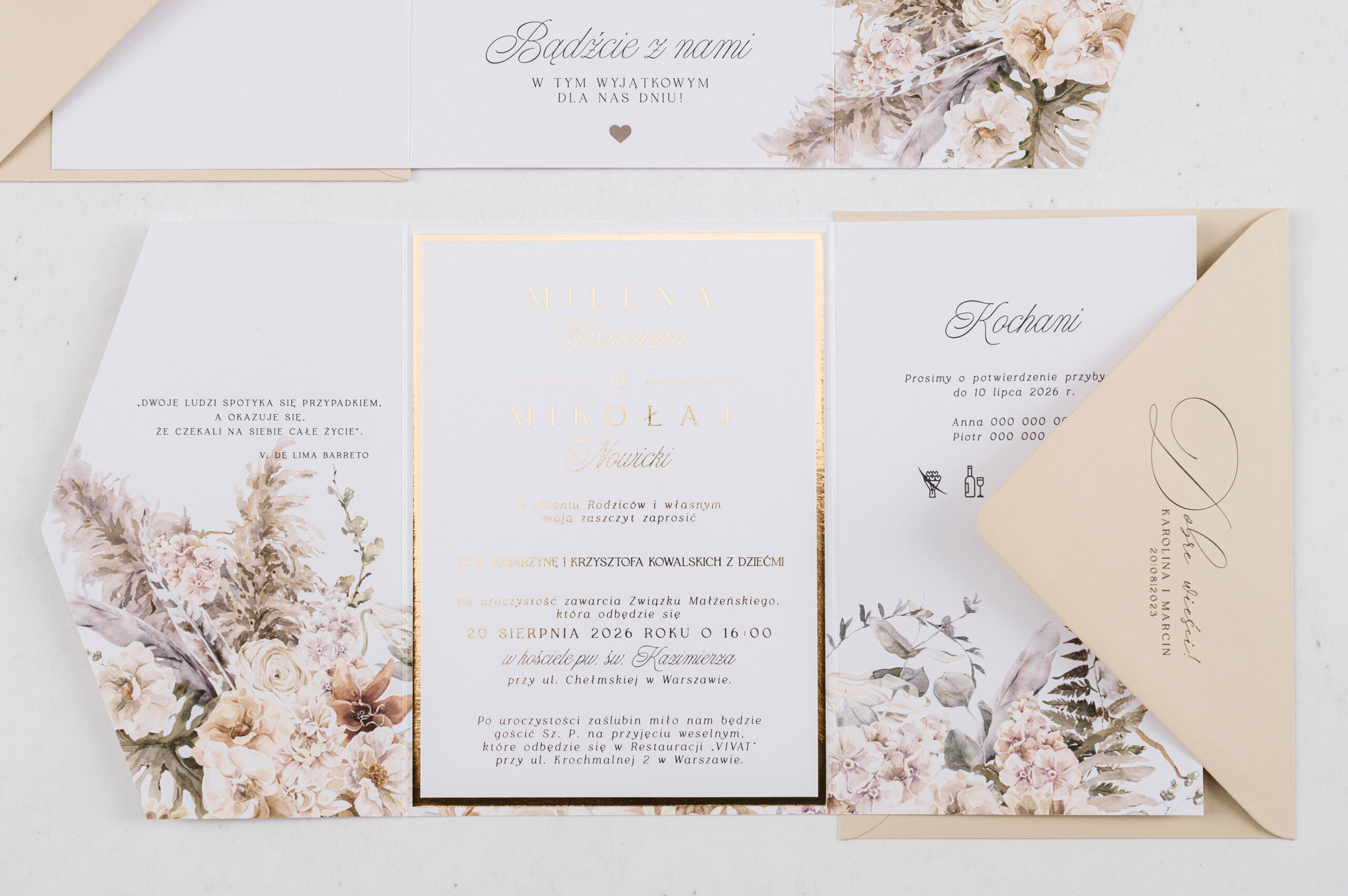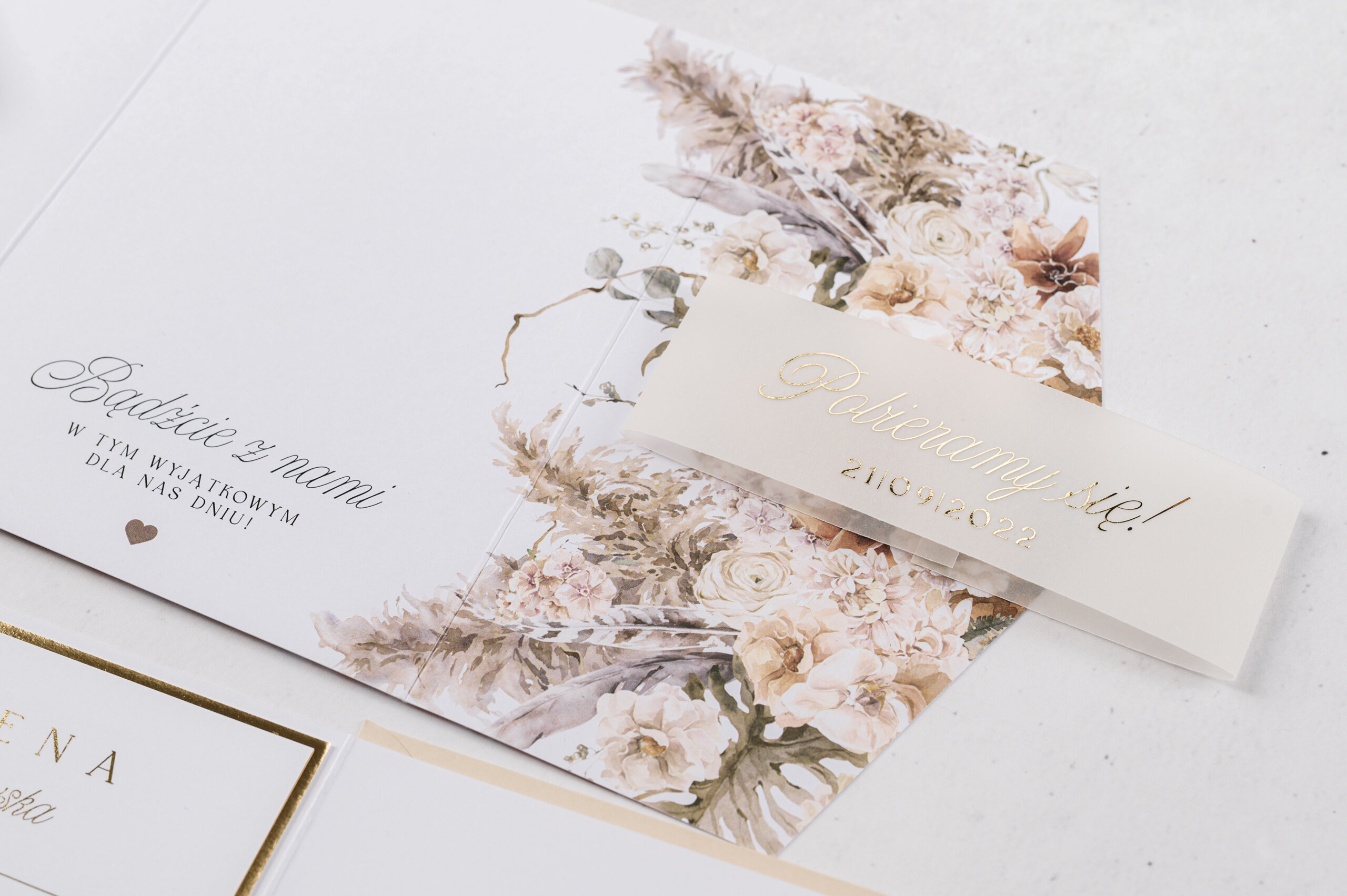 Próbne – Zaproszenia w kwiatowym folderze ze złoceniem w11