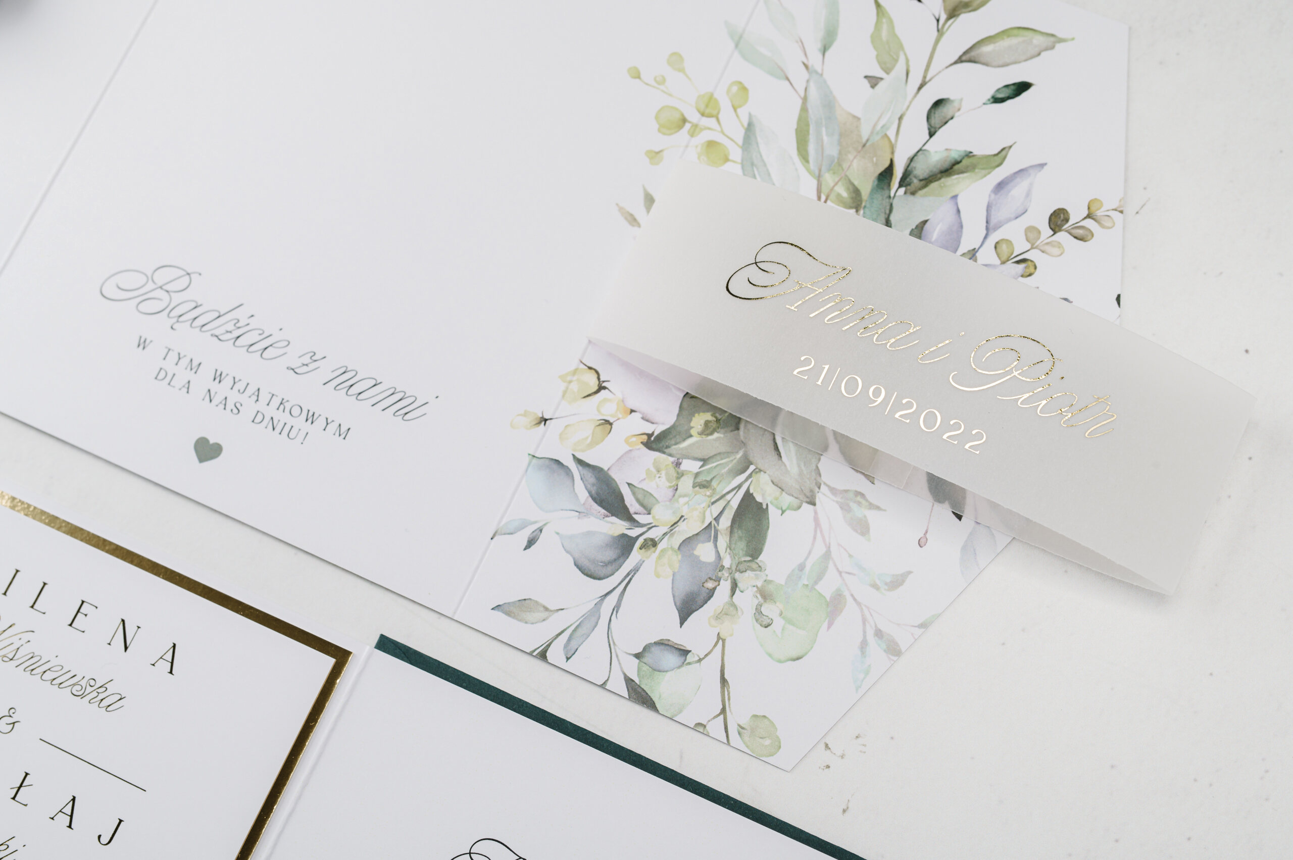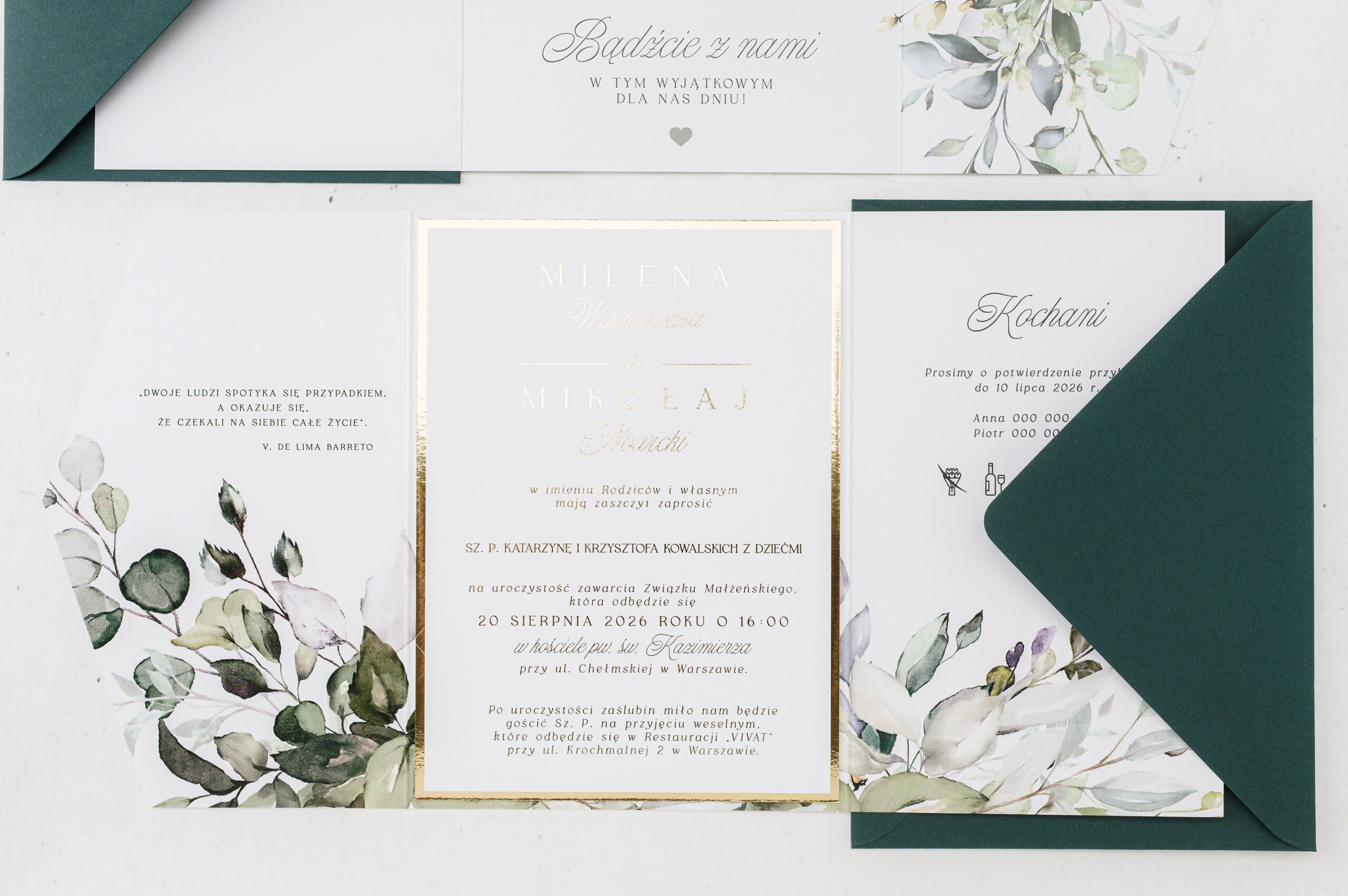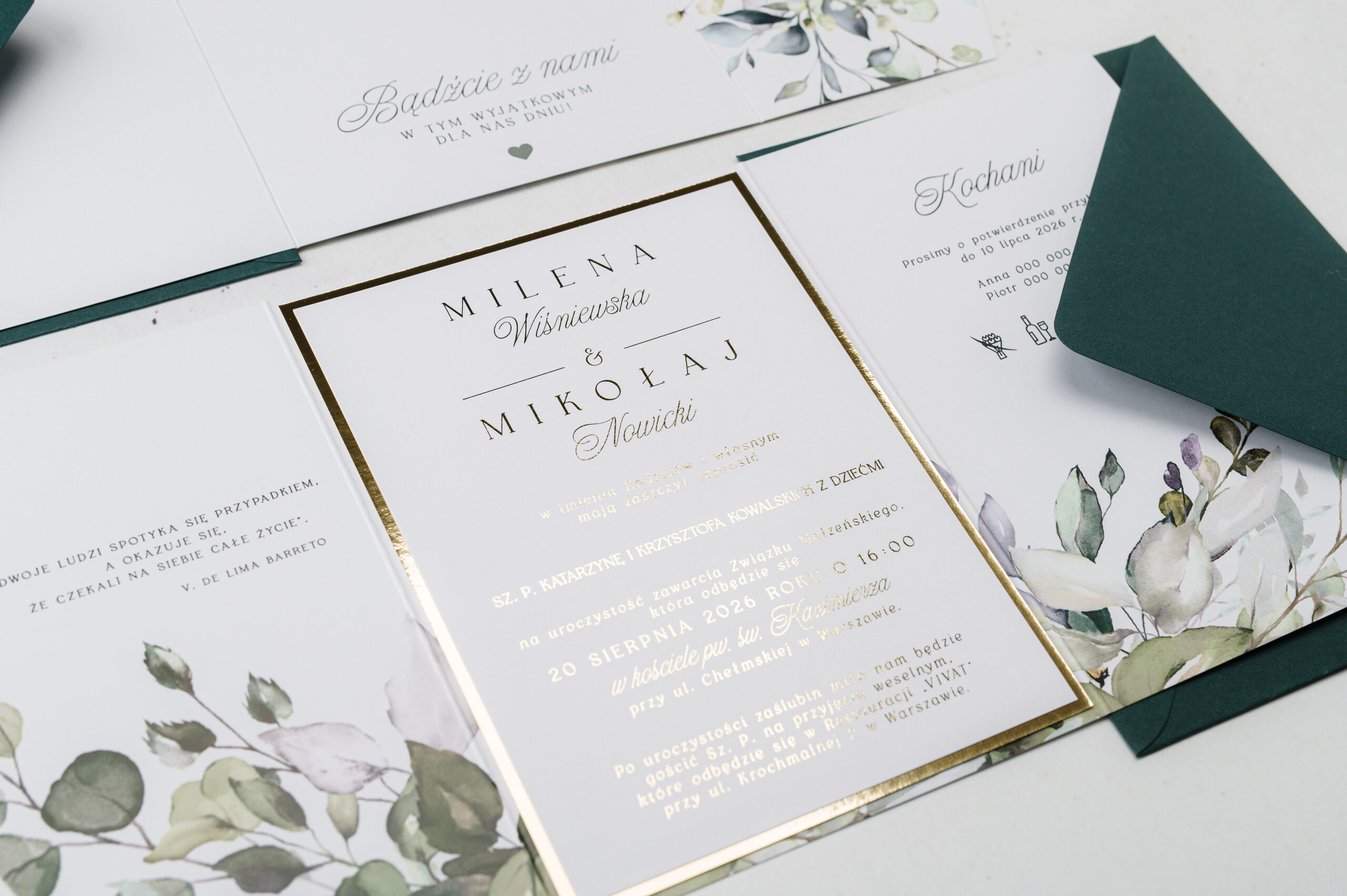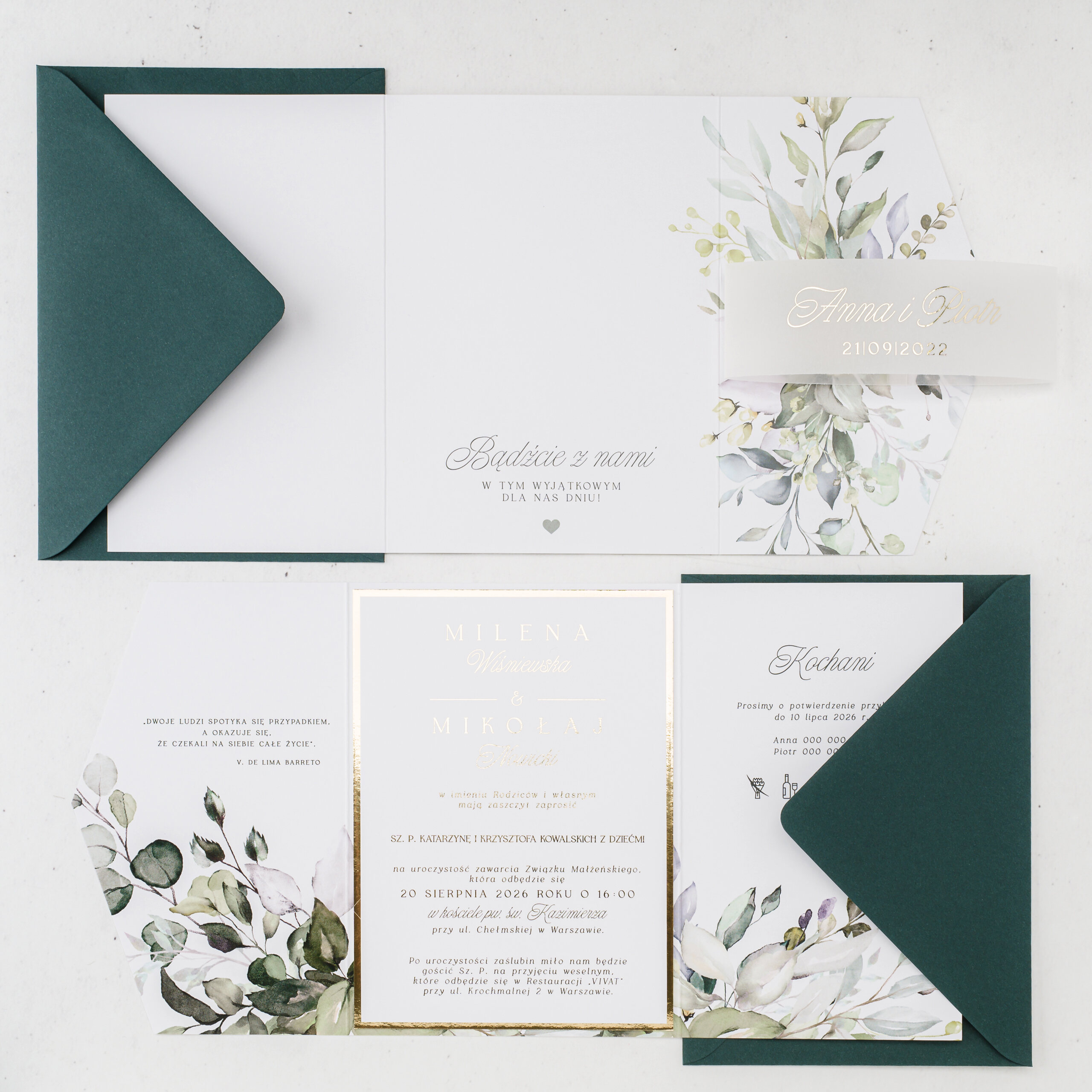 Próbne – Zaproszenia w kwiatowym folderze ze złoceniem w12
