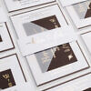 Tekst uszlachetniony jest metaliczną folią w kolorze złota, srebra lub różowego złota.