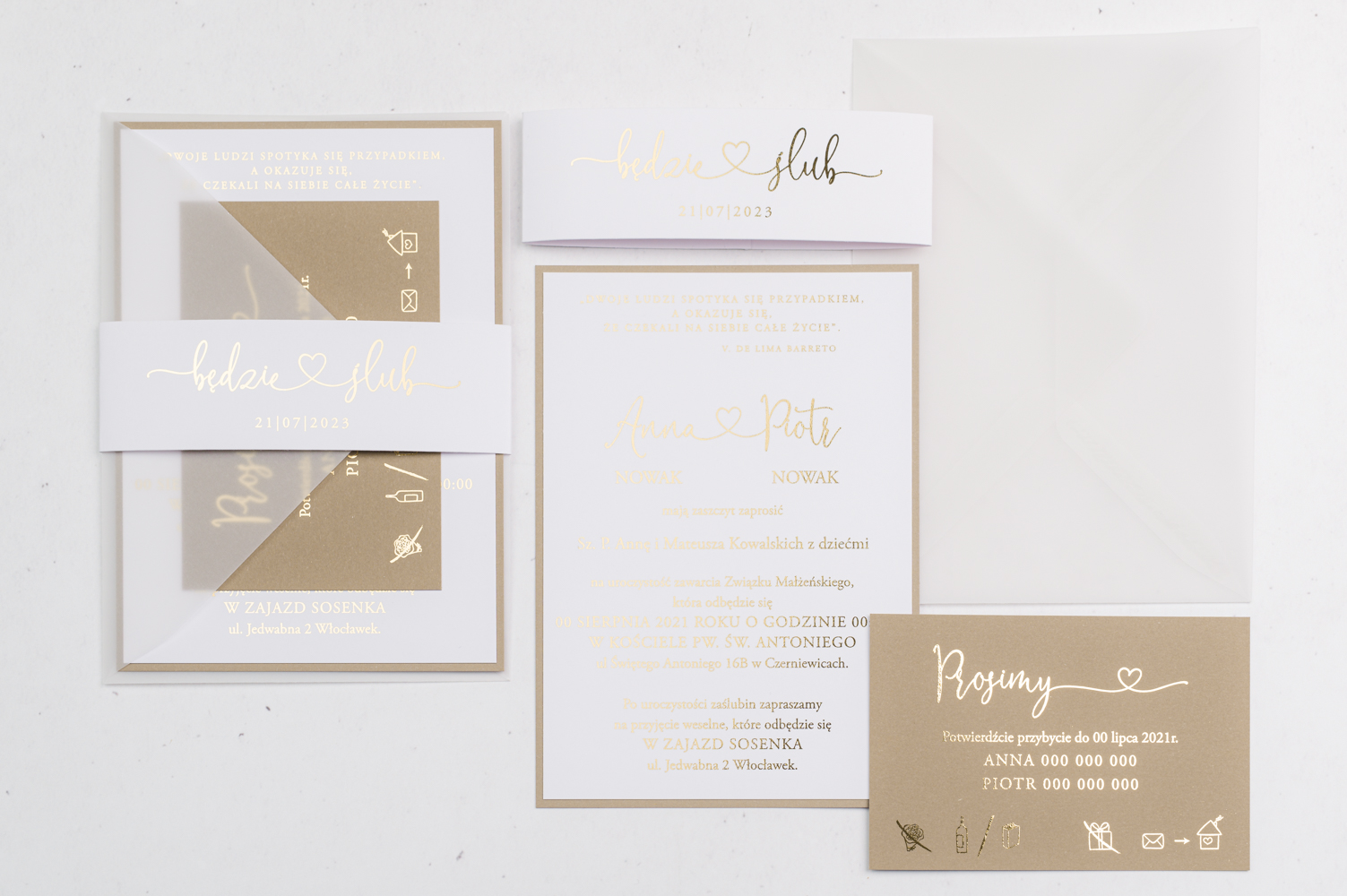 Wszystkie elementy drukowane na zaproszeniach możecie spersonalizować według uznania.