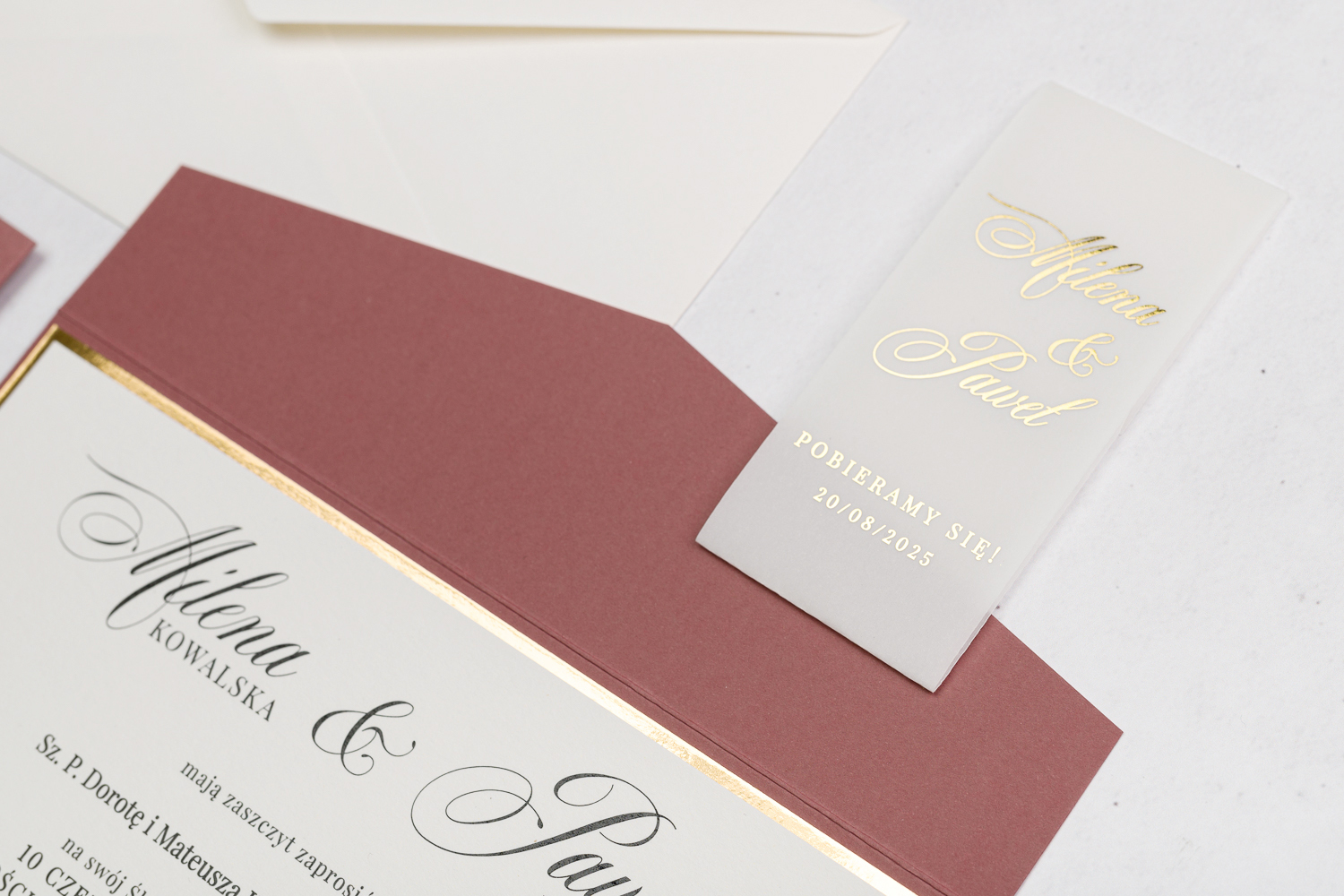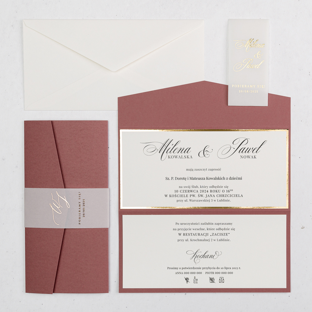 Do każdego zaproszenia dołączamy kopertę dopasowaną wymiarem do zaproszenia.