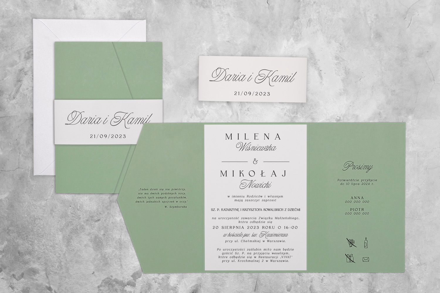 Wszystkie elementy drukowane na zaproszeniach możecie spersonalizować według uznania.