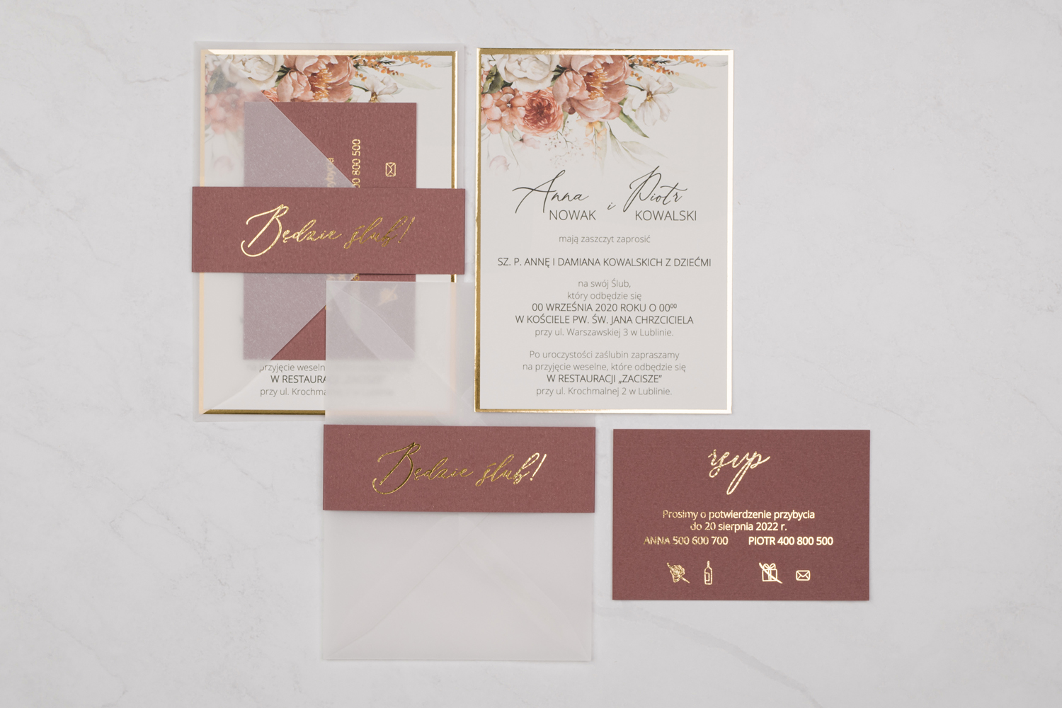 Dodaj pierwszą opinię dla Zaproszenia ślubne Misty w52 rosebud marsala