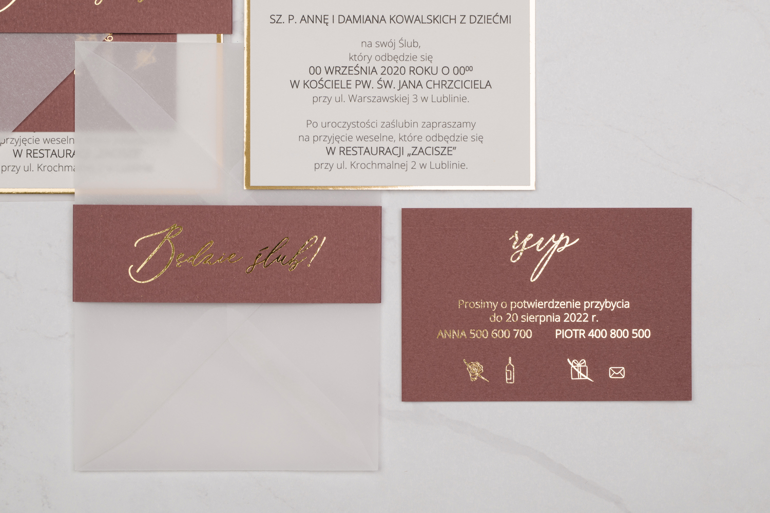 Do każdego zaproszenia dołączamy kopertę dopasowaną wymiarem do zaproszenia.