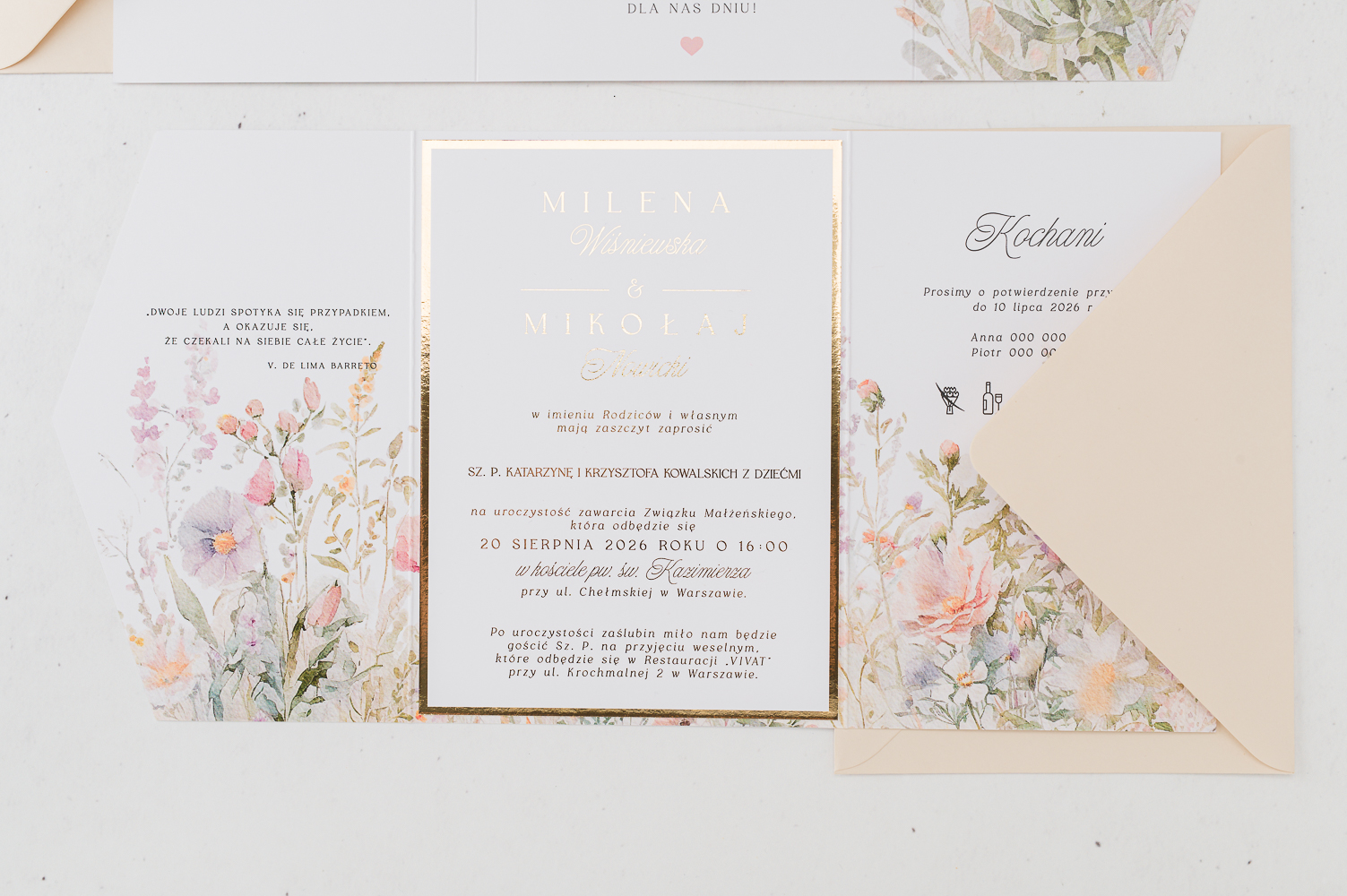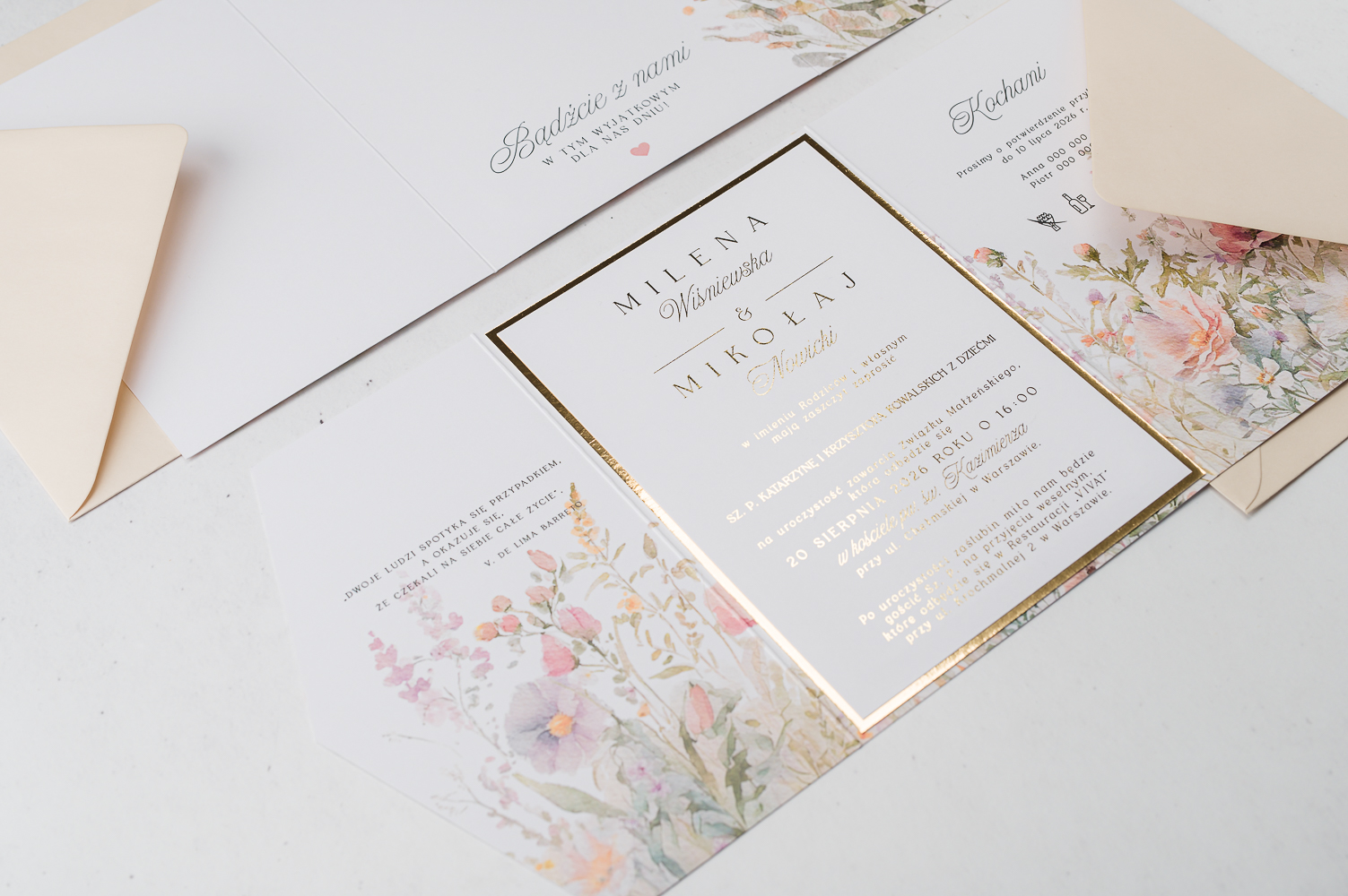 Dodaj pierwszą opinię dla Zaproszenia w kwiatowym folderze ze złoceniem w1