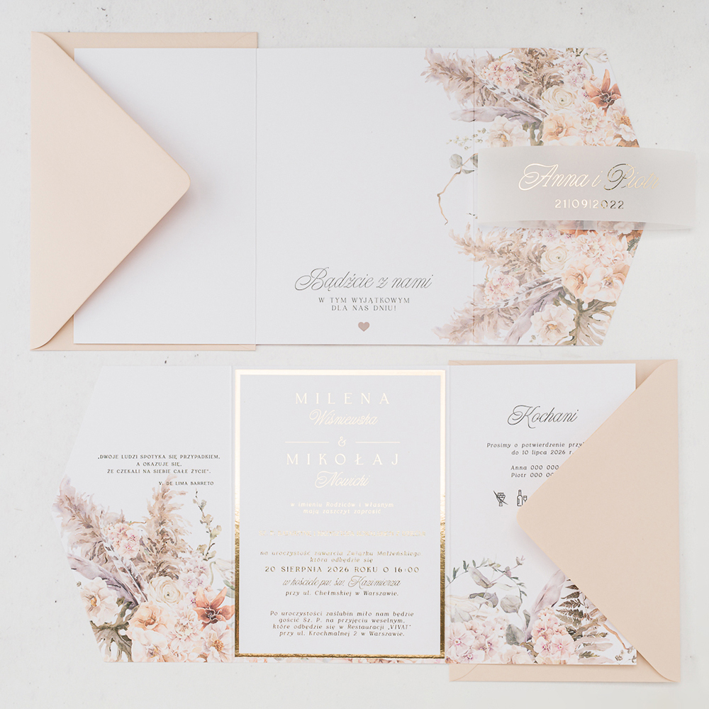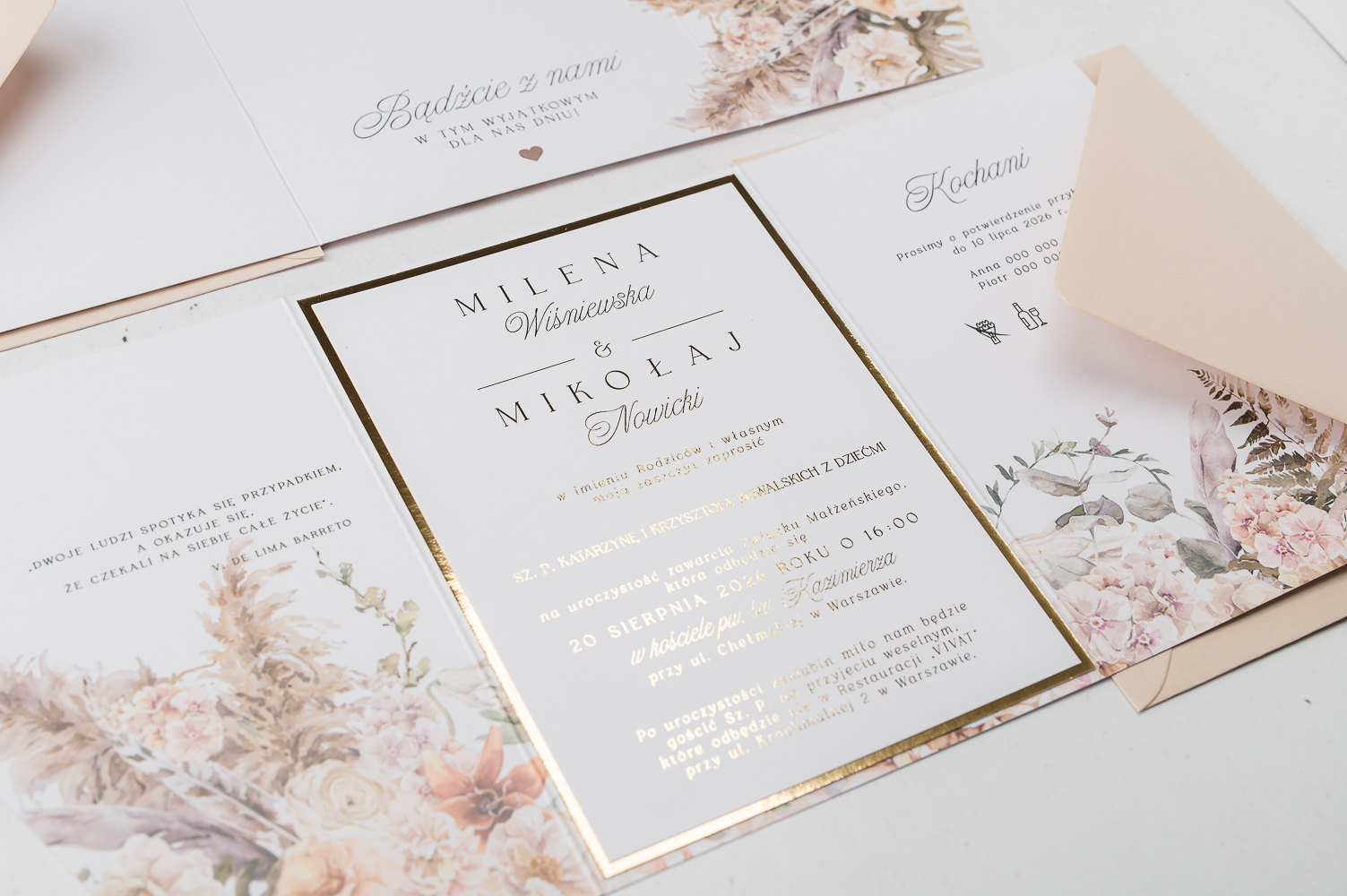 Dodaj pierwszą opinię dla Zaproszenia w kwiatowym folderze ze złoceniem w11