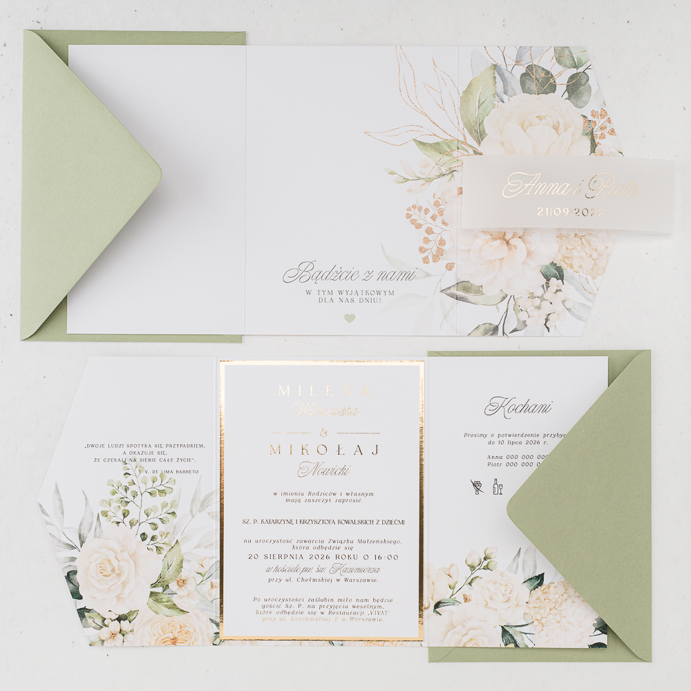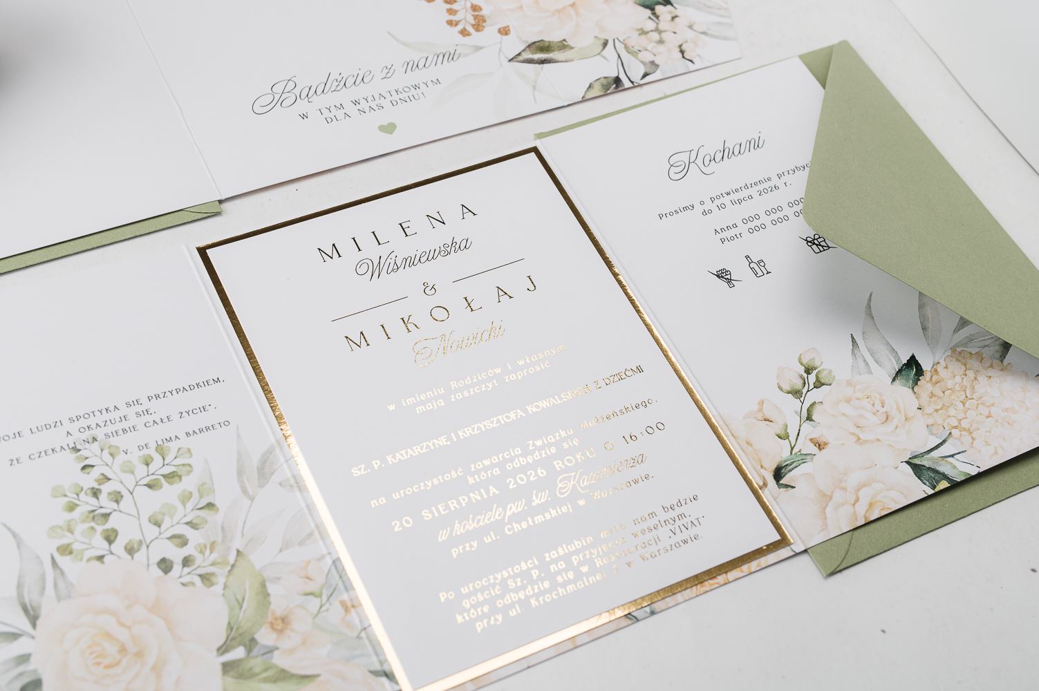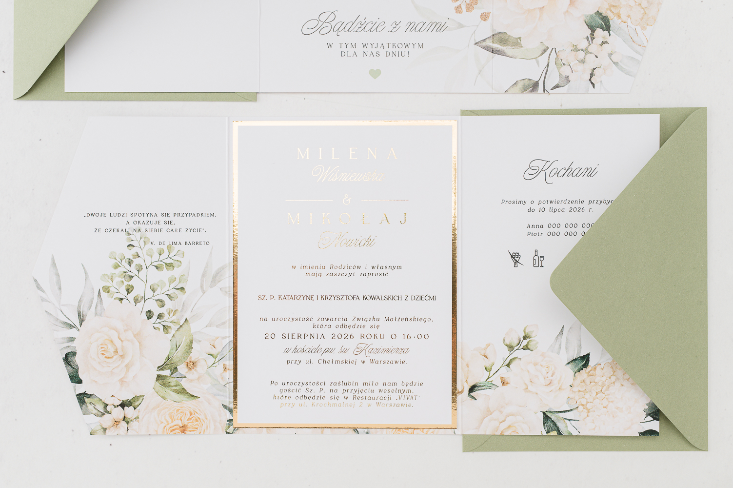 Dodaj pierwszą opinię dla Zaproszenia w kwiatowym folderze ze złoceniem w9